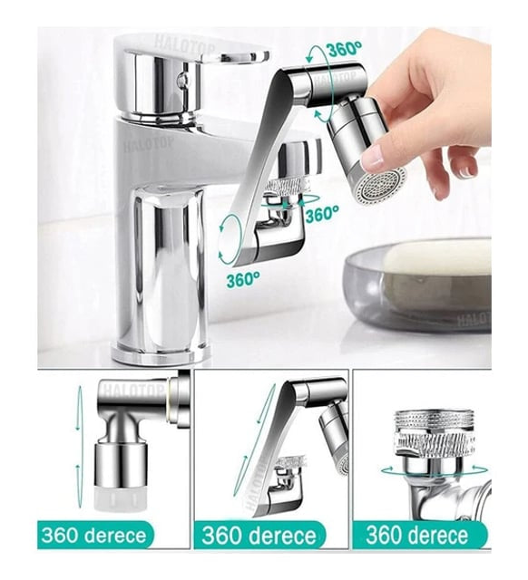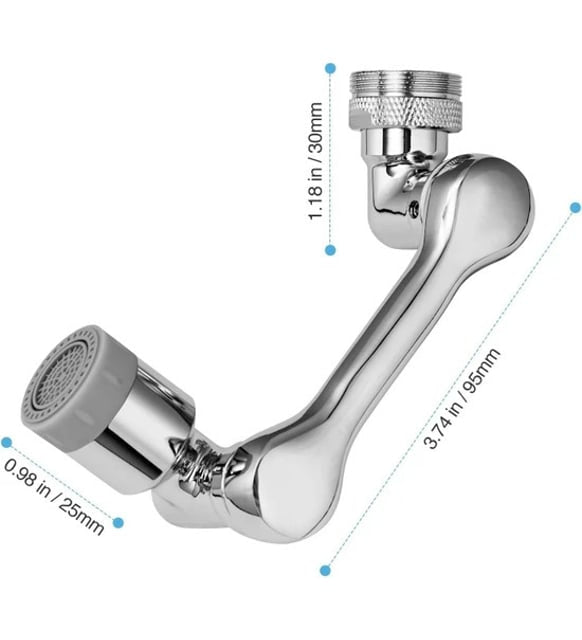 Birim fiyat başınaAKROBAT MUSLUK BAŞLIĞIHer Köşeye Ulaşan Temizlik, 1080° Çok Yönlü Döndürme ile1080° çok yönlü döndürme robotik kol tasarımı, su akışının lavabonun her köşesine ulaşmasını sağlayan toplam üç adet 360° dönüş arayüzüne sahiptir. Musluk havalandırıcı, iki su çıkış modu arasında geçiş yapabilme özelliği ile sıçramadan yumuşak kabarcık akışı elleri yıkamak için idealdir ve basınçlı sprey ise bardakları durulamak için uygundur.Bu ürün, metal görünümlü yüksek kaliteli ABS plastikten üretilmiştir ve aletsiz kurulum imkanı sunar; elle kolayca monte edilebilir. Çoğu ev musluğuyla uyumlu olan bu musluk ucu, 20/22/24 mm olmak üzere üç farklı diş seçeneği içerir. Çok amaçlı tasarımı sayesinde, mutfakta çeşitli meyveleri ve bulaşıkları yıkamak, banyoda yüzünüzü veya saçınızı yıkamak ve lavaboyu temizlemek için uygundur.Çift fonksiyonlu su akışı tasarımı, inatçı kirlerden kurtulmayı ve suyun lavabonuzun her köşesine ulaşmasını sağlar, mutfaktaki tüm ihtiyaçlarınızı karşılar. Mutfakta sebze ve meyveleri durulamak için, yemekleri yıkamak ve lavaboyu temizlemek için kullanılabilir. Banyoda ise günlük el ve yüz yıkamada büyük rahatlık sağlar ve pratik bir şekilde saçlarınızı yıkamanıza olanak tanır.Paket İçeriği:- 1080 Derece Dönebilir Musluk Ucu- Ürün, direkt olarak 22mm iç dişli bağlantı çapındadır. Paket içerisinden çıkan plastik manşon sayesinde 24mm dış dişli haline getirebilirsiniz.**Malzeme:** ABS Plastik**Ürün Rengi:** Gümüş, metal görünümlü plastikten üretilmiştir.