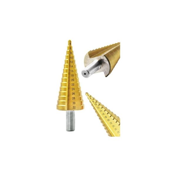 Birim fiyat başınaKADEMELİ MATKAP UCU SAC DELME PANÇ SETİÜrün Özellikleri3 Parça Yüksek Hız Çeliğinden mamul kademeli matkap uç seti.Çift yiv sistemi ile çatlamadan kesim.Küçük Delgi : 4, 6, 8, 10, 12 mmOrta Delgi : 4, 6, 8, 10, 12, 14, 16, 18, 20 mmBüyük Delgi : 4, 6, 8, 10, 12, 14, 16, 18, 20, 22, 24, 26, 28, 30, 32 mmNormal HSS uçlara oranla 6 kata oranla daha dayanıklı kalay kaplama.Paket İçeriği1 adet kademeli matkap ucu sac delme panç seti