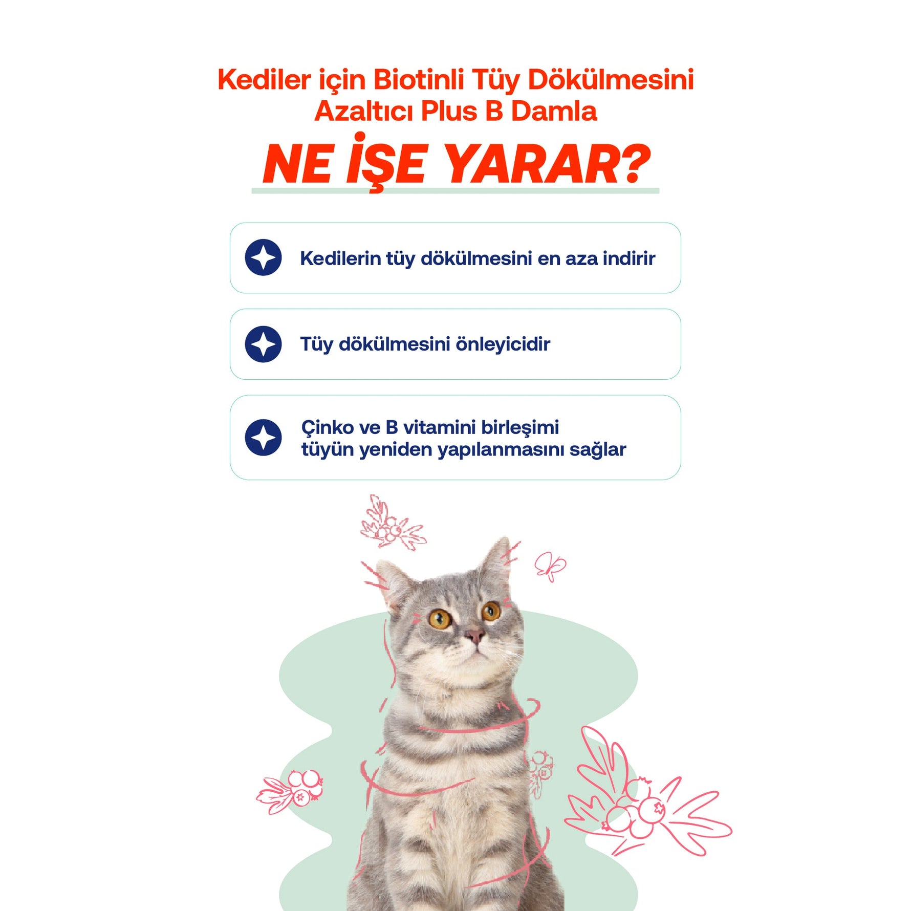 BioFeline Plus B Damla – Kedi Tüy Dökülmesini Azaltan Biotinli & Çinko Destekli Takviye 50 ml