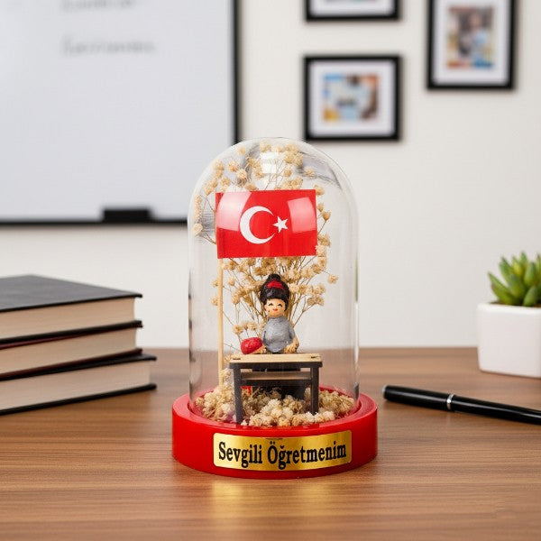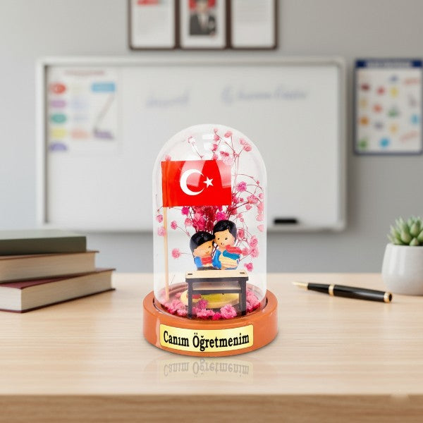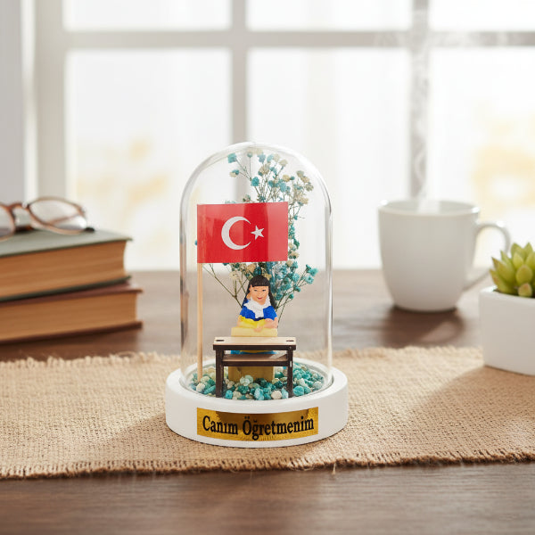 Türk Bayraklı Sıralı Ters Fanus - Öğretmenler Günü Hediyesi